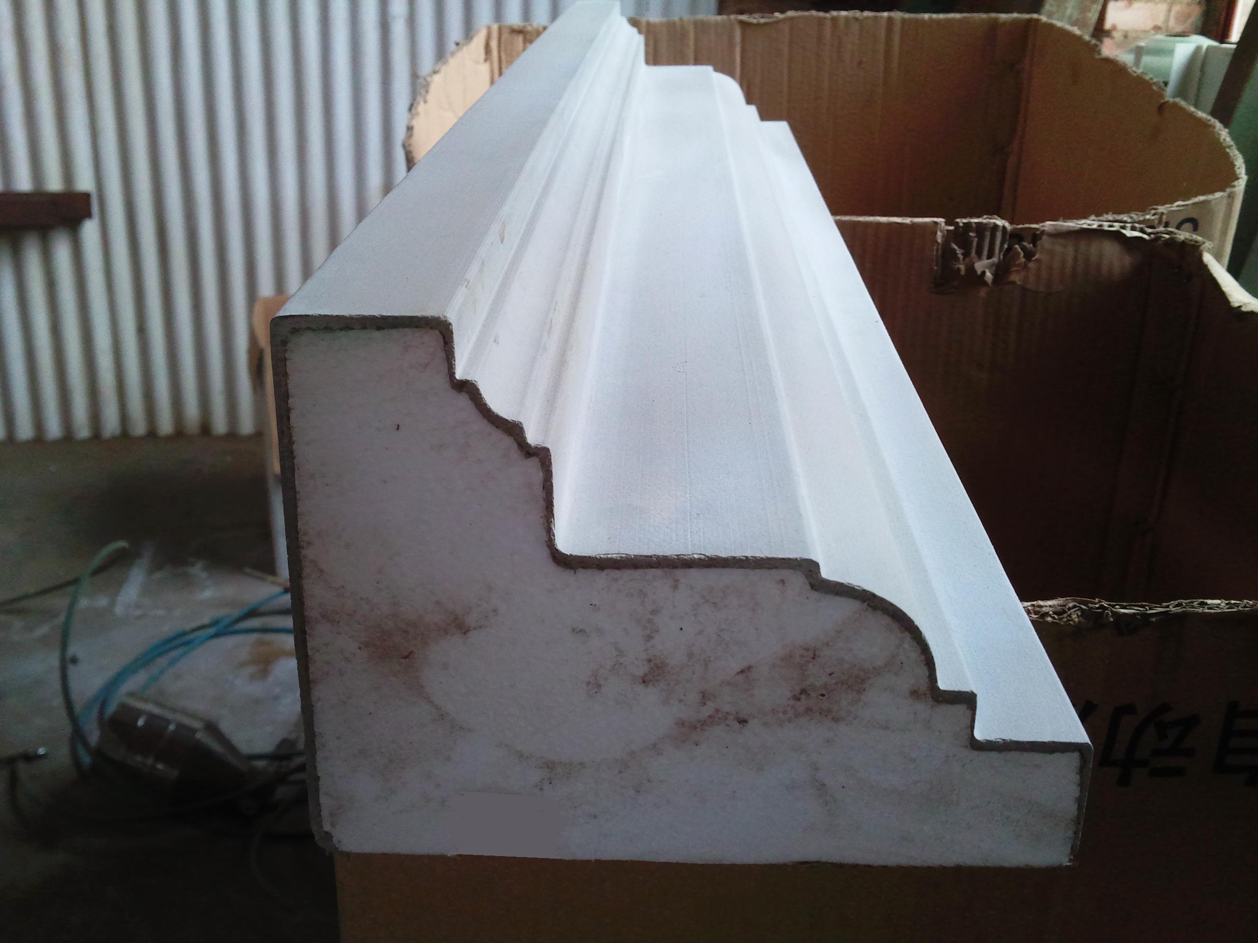 泡沫线条砂浆刮抹机的成型流程: 1、连续性作业工艺、适中的线速度使工艺要求与生产效率的提高相结合。 2、双道设计在罩小线的一机顶二机,罩大线时双道合一,有足够的托动力。 3、定制的链条增加了托动链与被托动聚笨受力面积,提高了托动总力,既保护线角的又能了顺利生产。